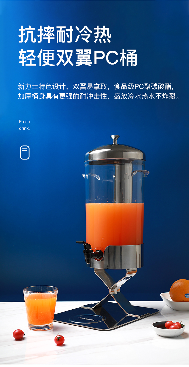 新力士特色双翼设计,不仅美观,还极大方便服务人员和顾客取用和移动果汁鼎,减少操作难度,提高使用效率。