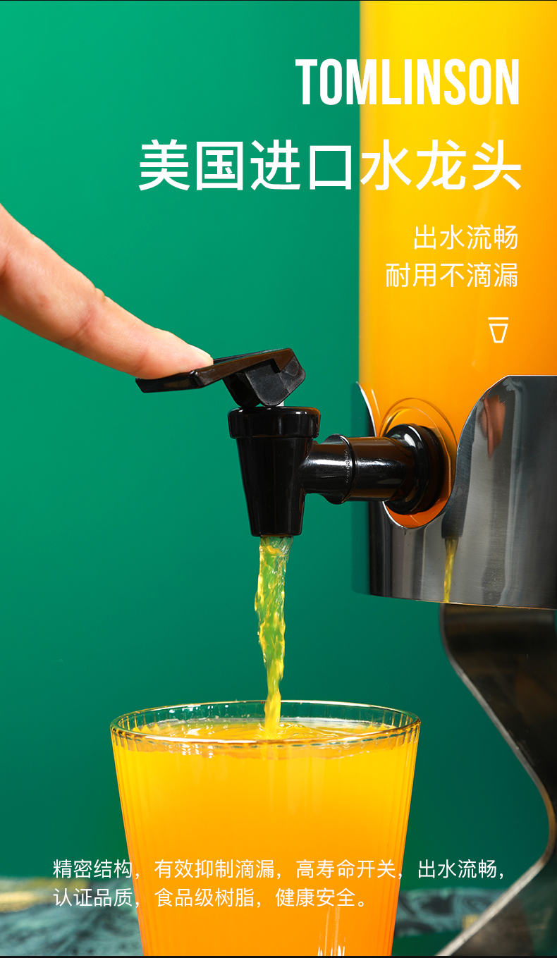 采用美国进口Tomlinson龙头,精准控制饮品出水,杜绝滴漏。无论是繁忙的自助餐还是大型宴会,都能保持饮品台干净整洁,减少清理工作。