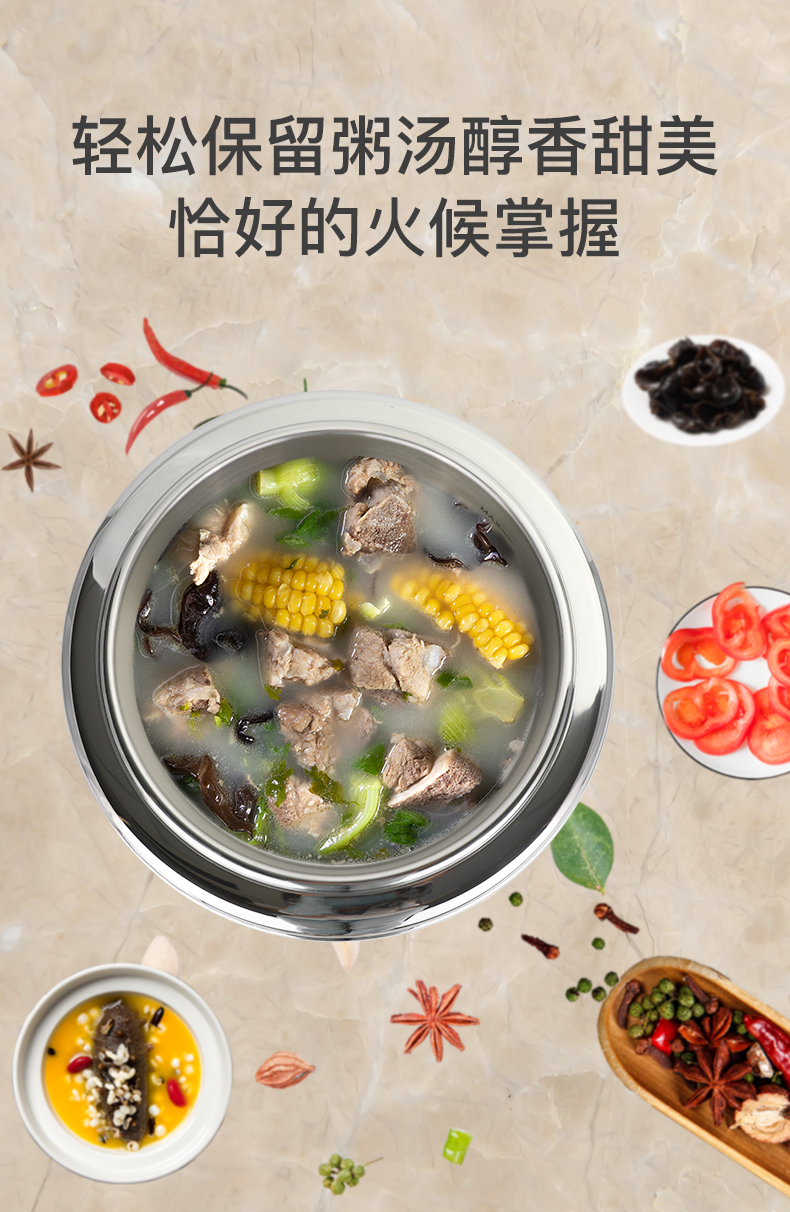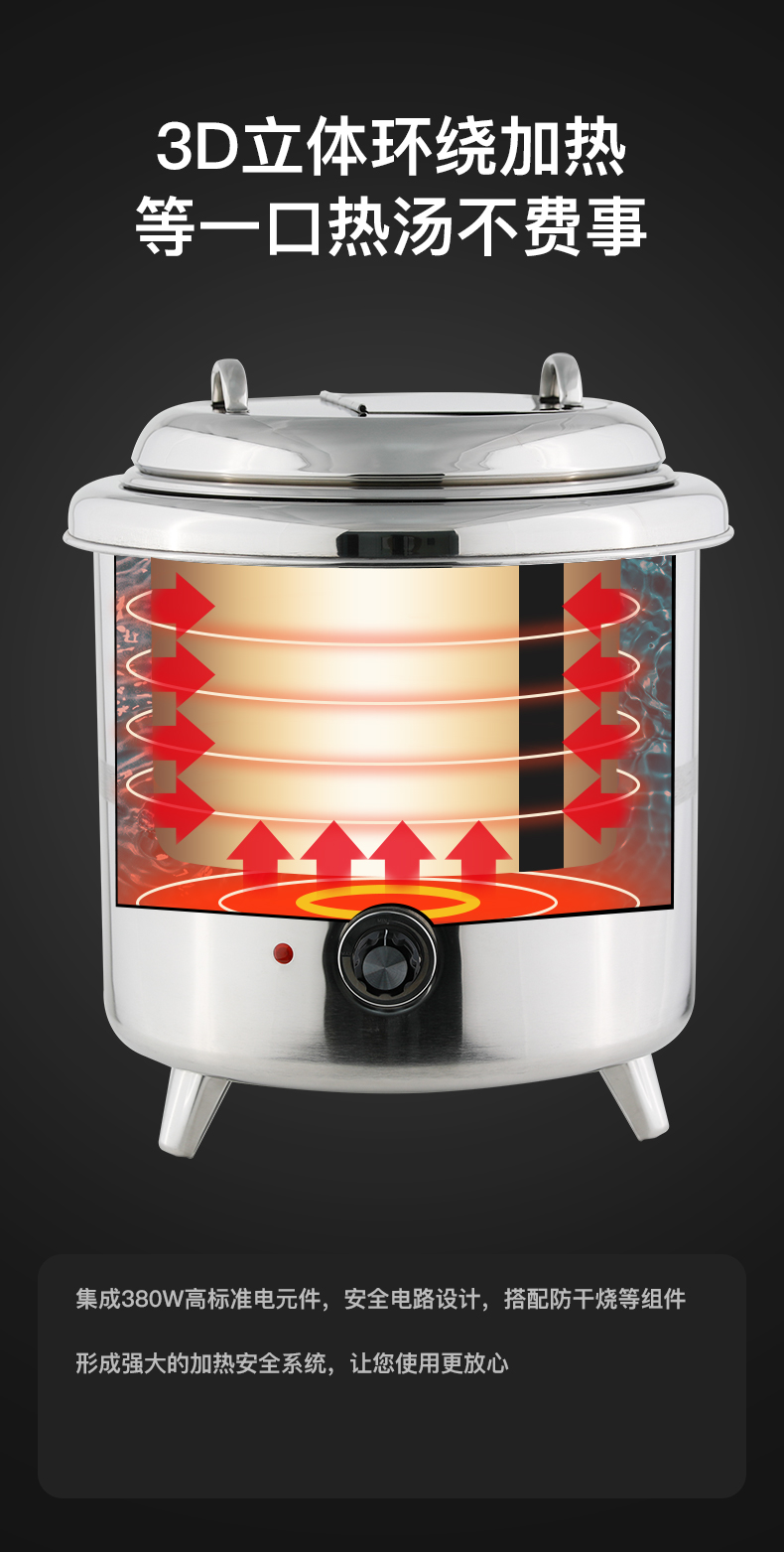 3D立体环绕加热 等一口热汤不费事大容量电子暖汤煲 原汁原味 营养更丰富3D环绕加热 全钢健康材质 可调节温度加热快380W功率 可调温度65-85°C随心调控安全保障,高标准电元件;304不锈钢食品级材质