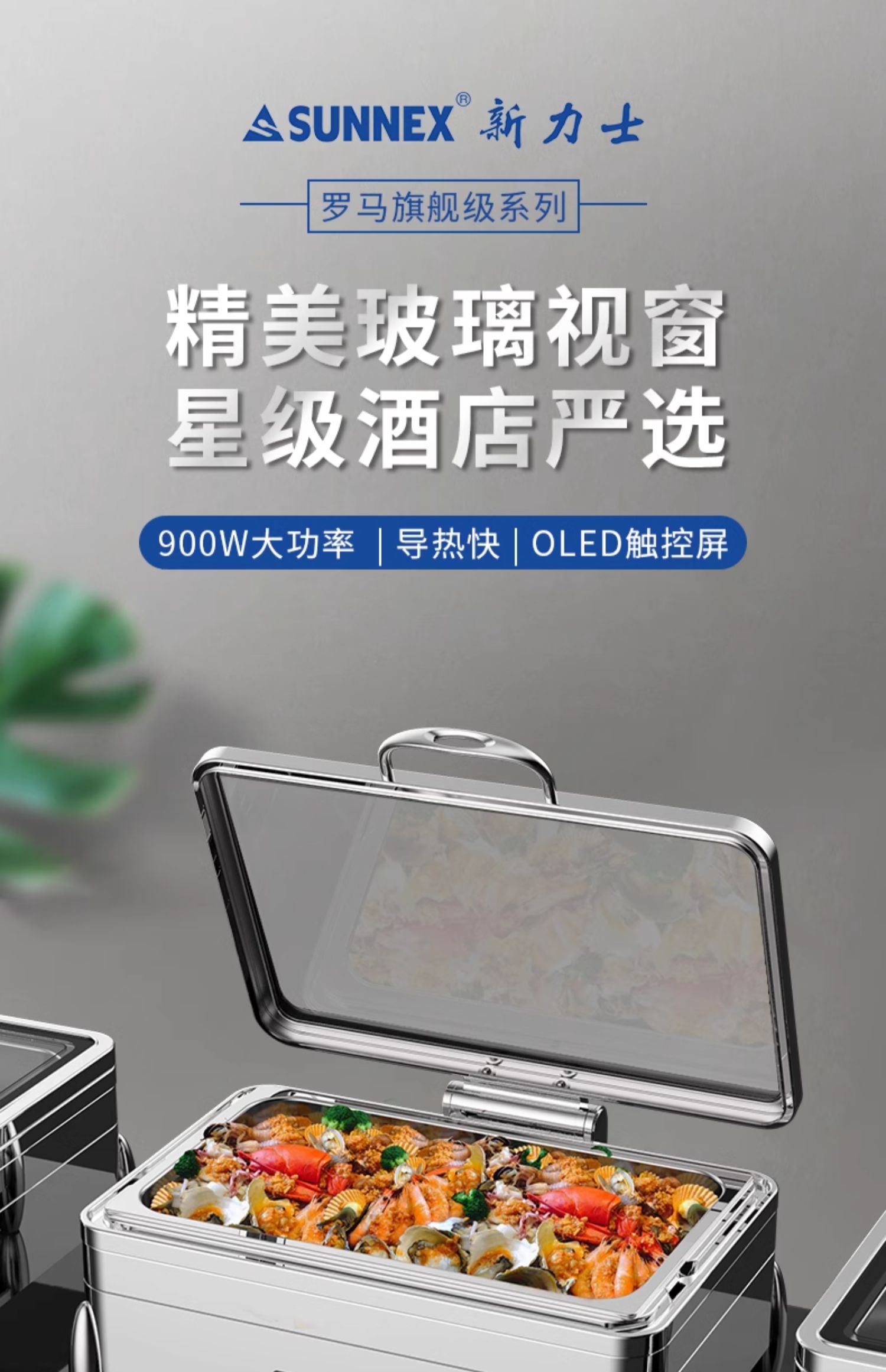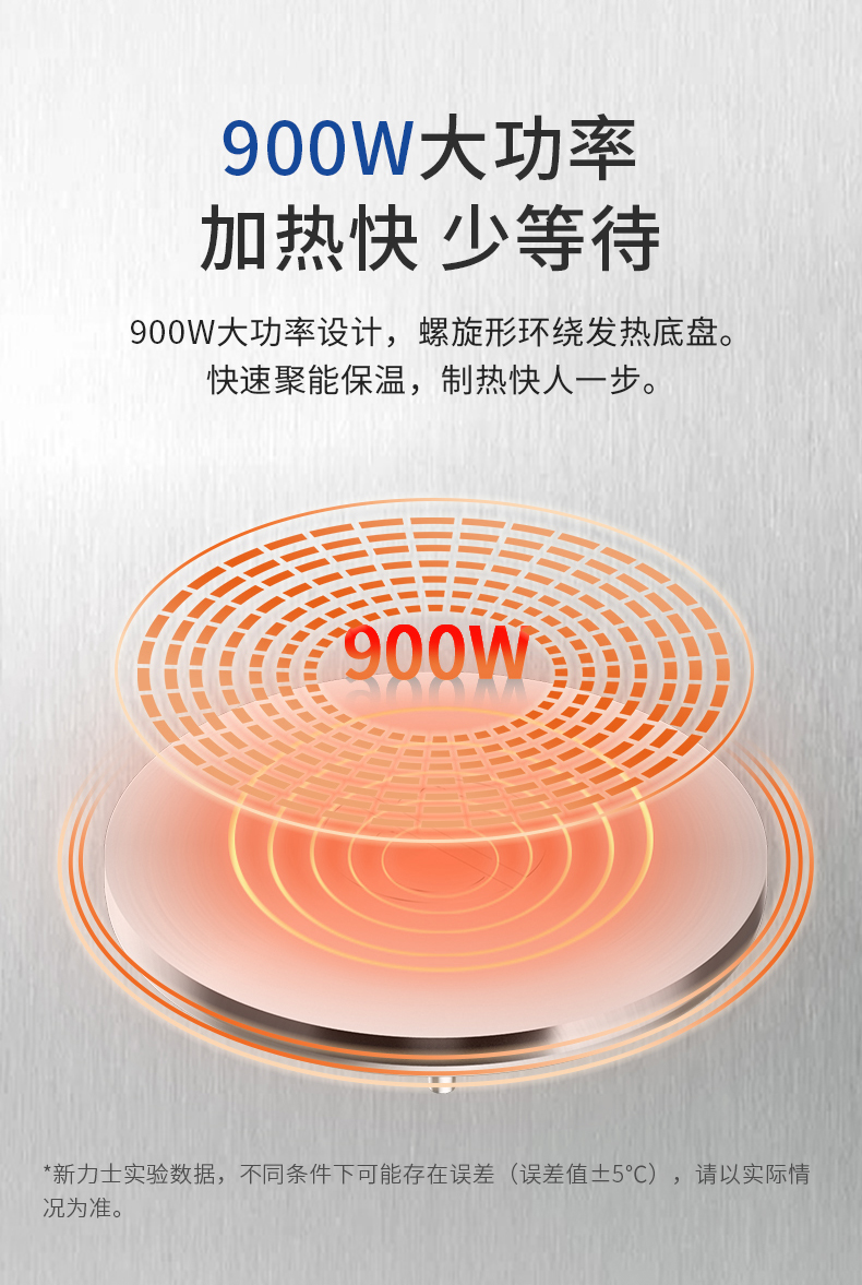 • 900W大功率加热,结合螺旋环绕发热底盘,迅速加热,节省时间,确保高效的厨房运转,满足领导饭堂和星级餐厅的需求。