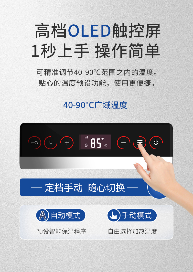 • 高端OLED触控屏,操作简便,精准调节温度,满足星级餐厅对烹饪精确度和高效性的高要求。