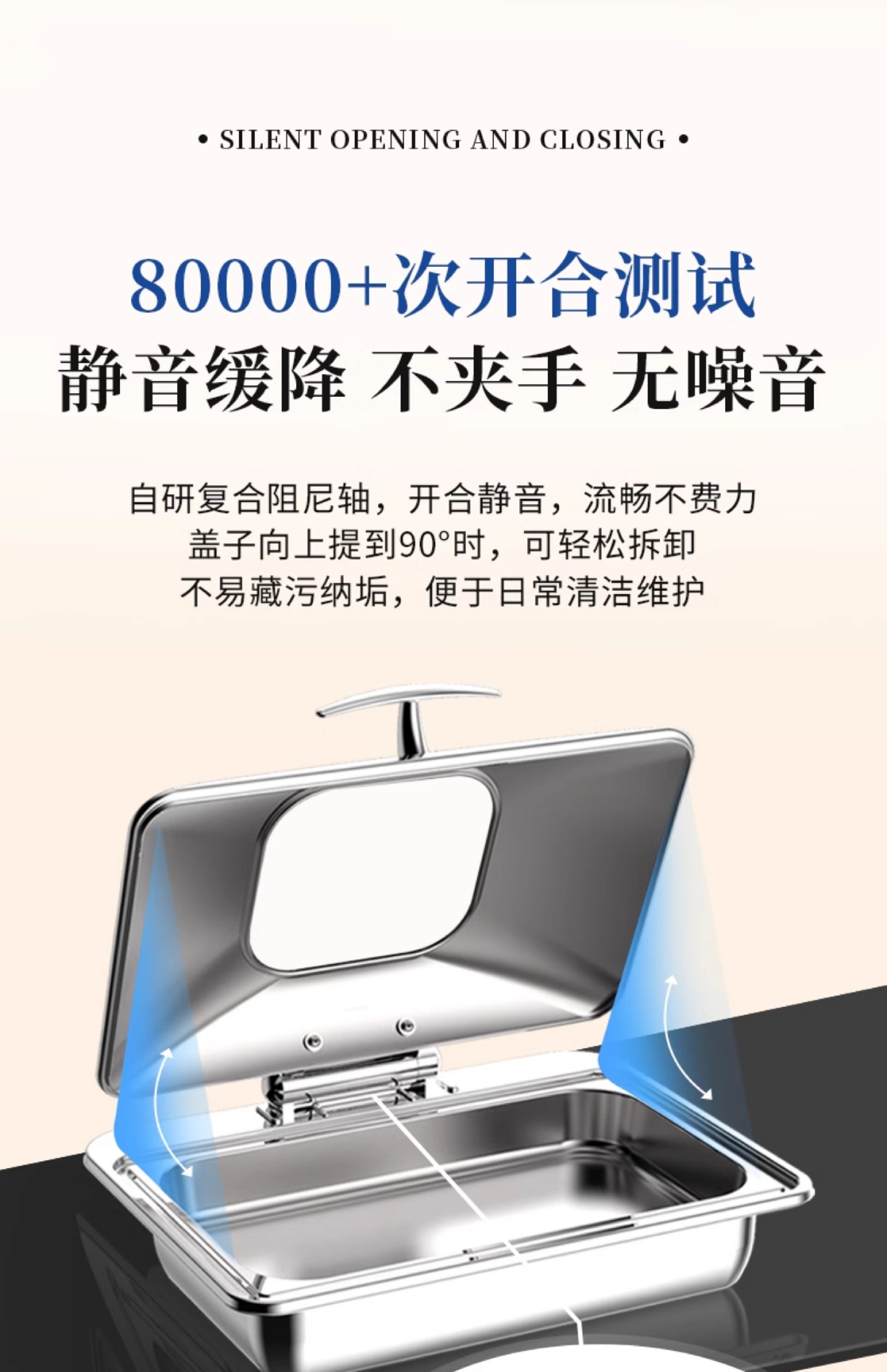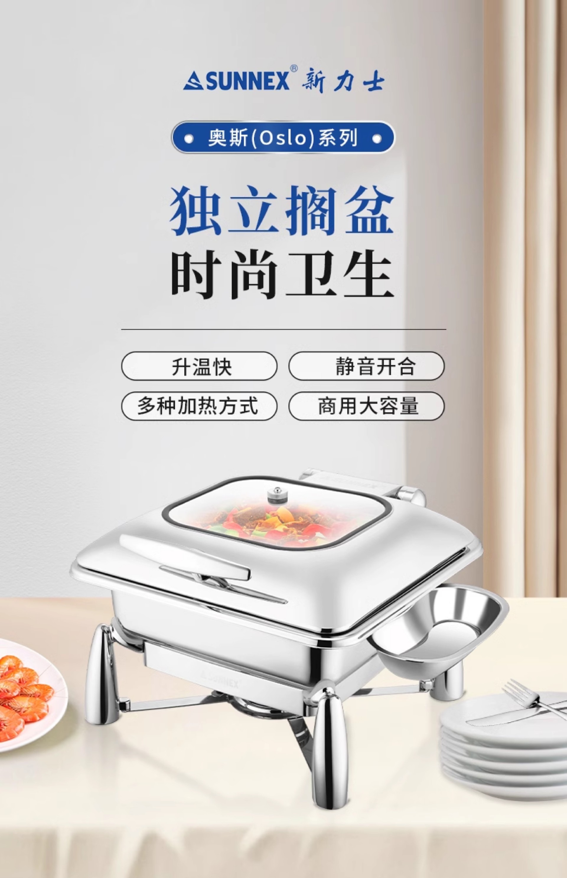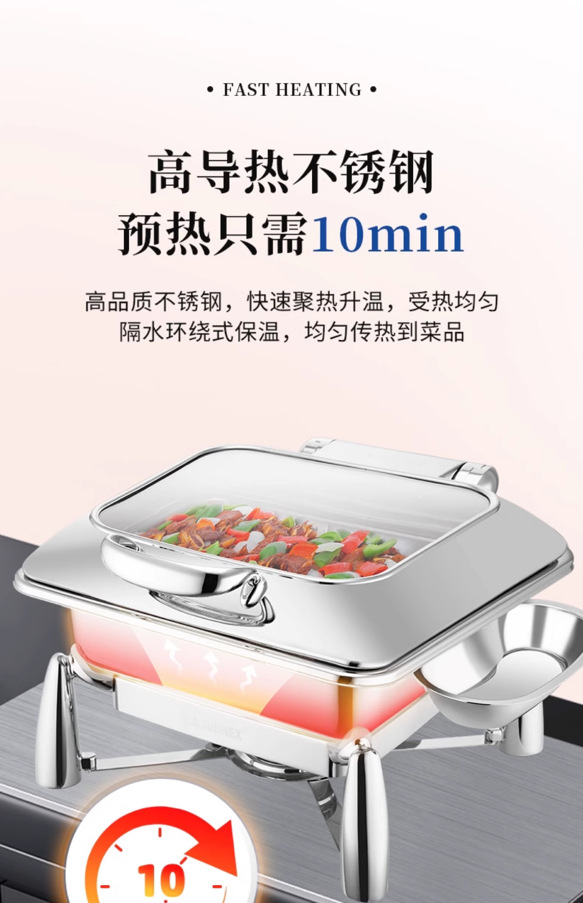 • 高效加热,满足大批量需求:自助餐厅客流量大,快速升温功能和多种加热方式(电热、酒精杯)确保食物时刻保持温热,提升餐厅运营效率。