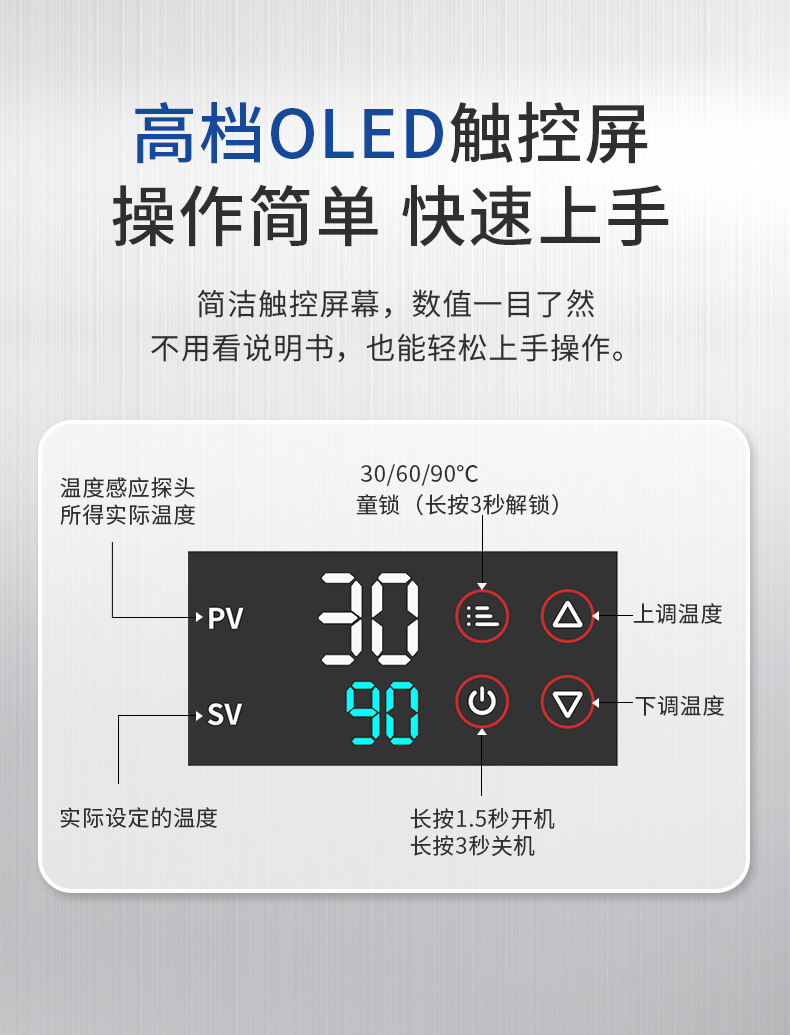 • OLED触控屏,智能化操作便捷。搭载高清OLED触控屏,食堂工作人员可轻松调整温度和模式