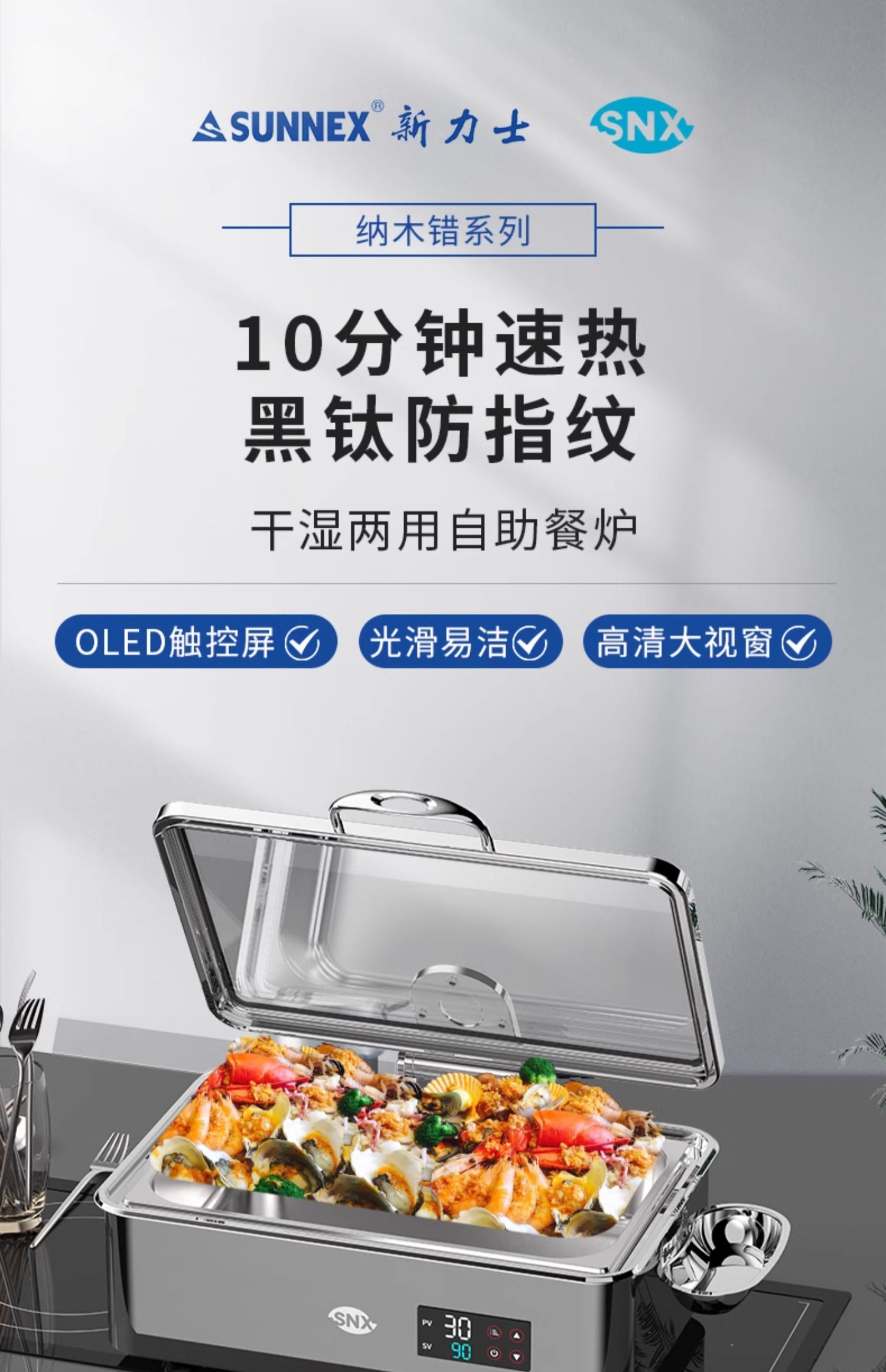 • 远红外加热技术,10分钟速热。干湿两用自助餐炉采用先进的远红外加热技术,能够在10分钟内快速预热,适合学校和企业食堂的大规模用餐需求。相比传统餐炉,不仅大幅缩短加热时间,还有效节省了能源,减少等待时间,提升食堂的整体运营效率。